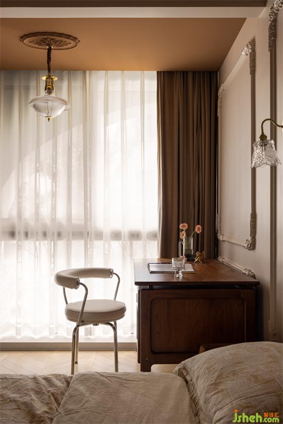 The study and bedroom, the balcony is incorporated into the bedroom, which increases the sense of space and meets the needs of peach. The overall lines are smooth and beautiful.