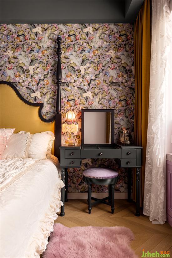 明艷的色彩組合,體現(xiàn)了復(fù)古、公館裝修設(shè)計(jì)混搭的完美個(gè)性,代入感極強(qiáng)。