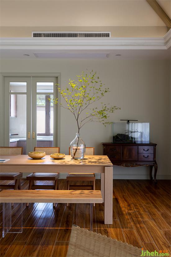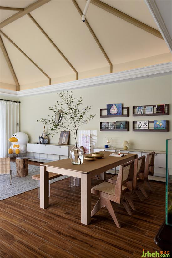 餐廳搭配的是原木風(fēng)餐桌椅,搭配綠色苔蘚和吊鐘,仿佛置身在大自然中享受美食。