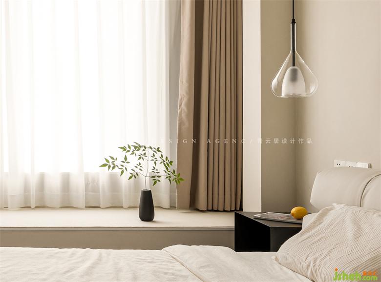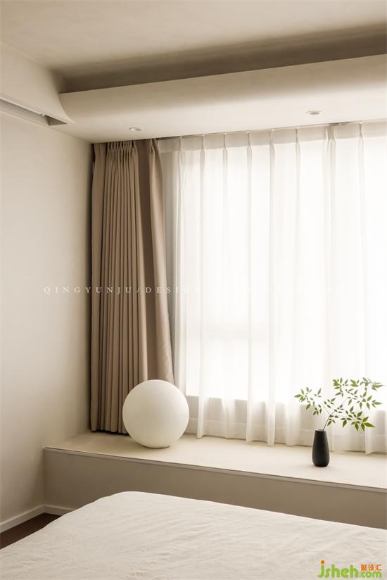 The ceiling is designed with a concave curtain box, and the other side is an arc shape, which hides the light strip, which is beautiful and practical in appearance.