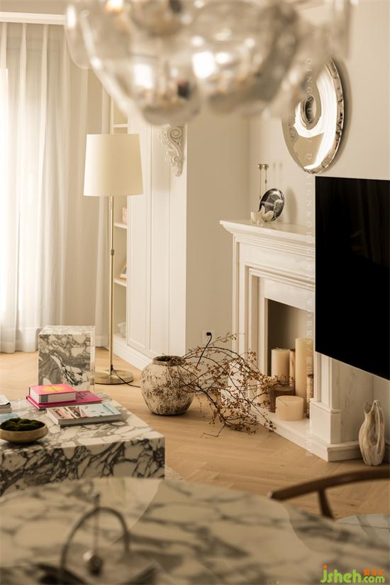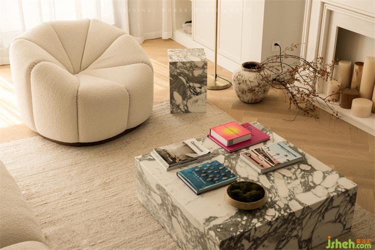 大理石茶幾,造型簡潔大氣,融入了石材的本質(zhì)紋理,杭州錦麟府裝修設計搭配整體軟裝,滿滿的現(xiàn)代奢華氣質(zhì)。