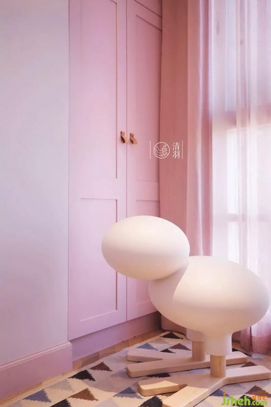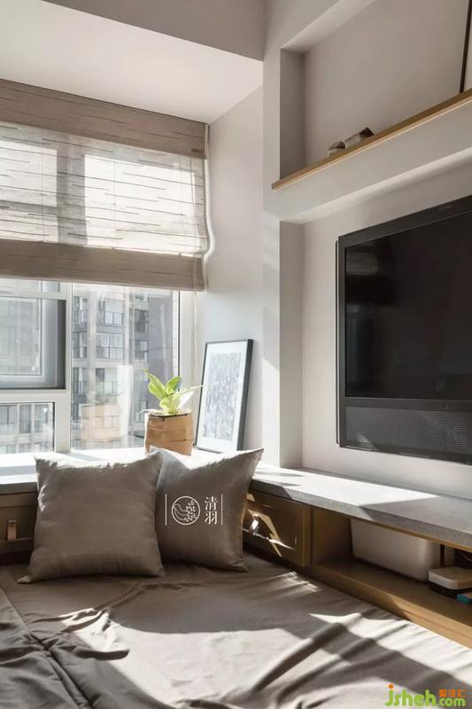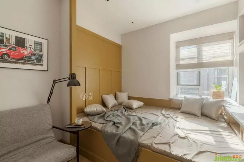 這個房間是這套房子面積最小的臥室,為了充分利用空間,并且讓房間看上去不擁擠,我們室內設計師選擇了使用榻榻米。這里除了客房的功能,平時更是兩個寶寶玩耍的地方。