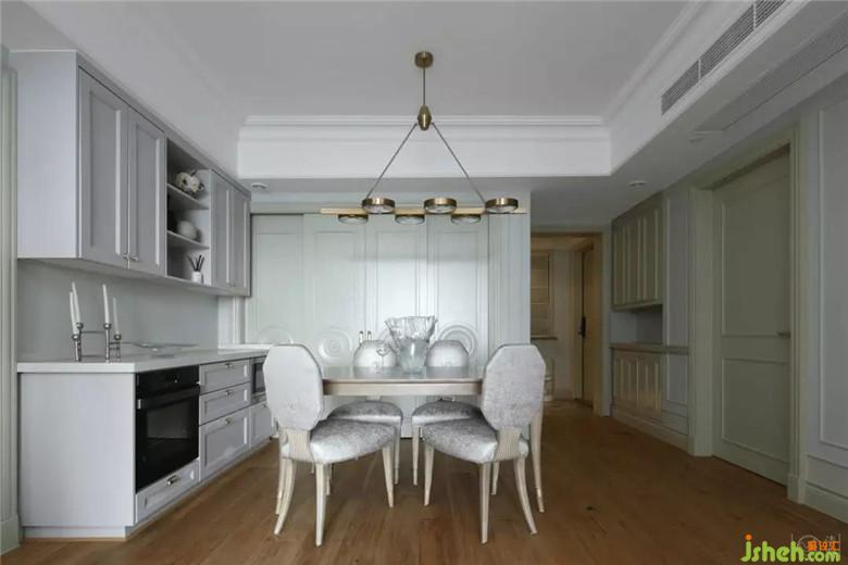 餐廳空間原本顏色簡(jiǎn)淡,我們?cè)谠A(chǔ)上添置了現(xiàn)代而富有光澤的吊燈以及餐桌椅,用恰當(dāng)好處的設(shè)計(jì)筆法,給空間帶來(lái)了優(yōu)雅的魅力與高級(jí)之感。