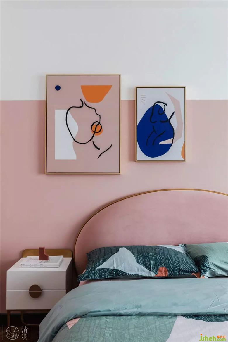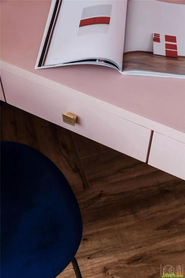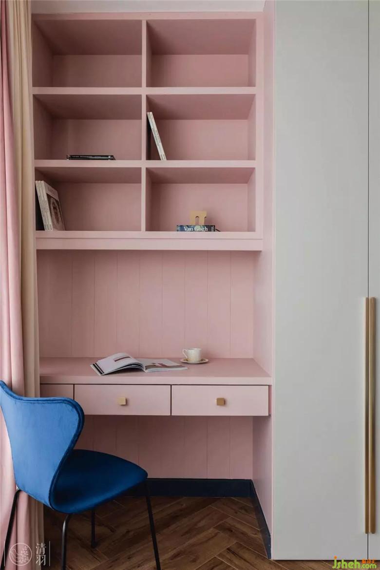 每個(gè)小女孩都喜歡粉色,女兒的房間在淺粉中調(diào)入了一點(diǎn)橙,不再是嬌柔甜膩,多了一些天真孩子氣??臻g留白較多,給成長(zhǎng)更多可能。