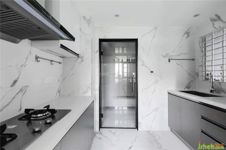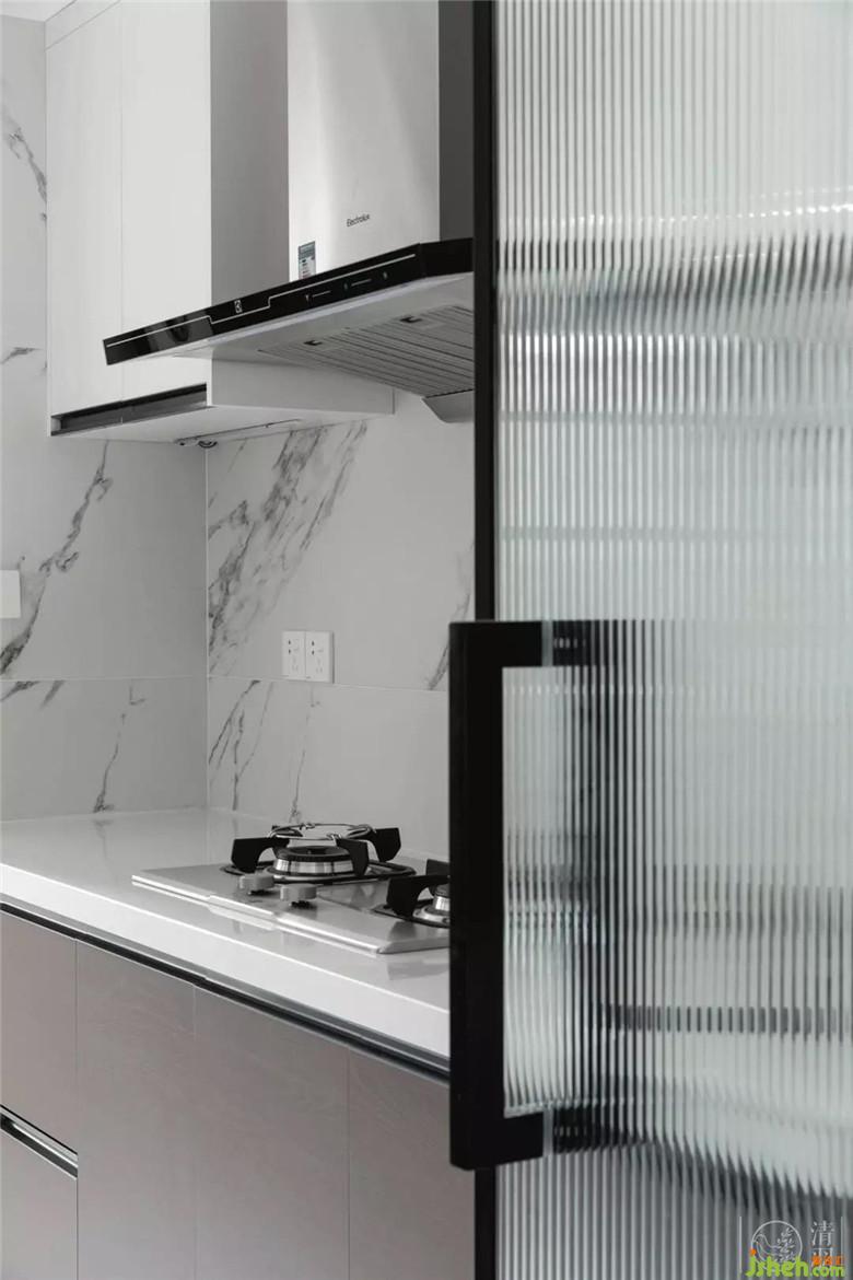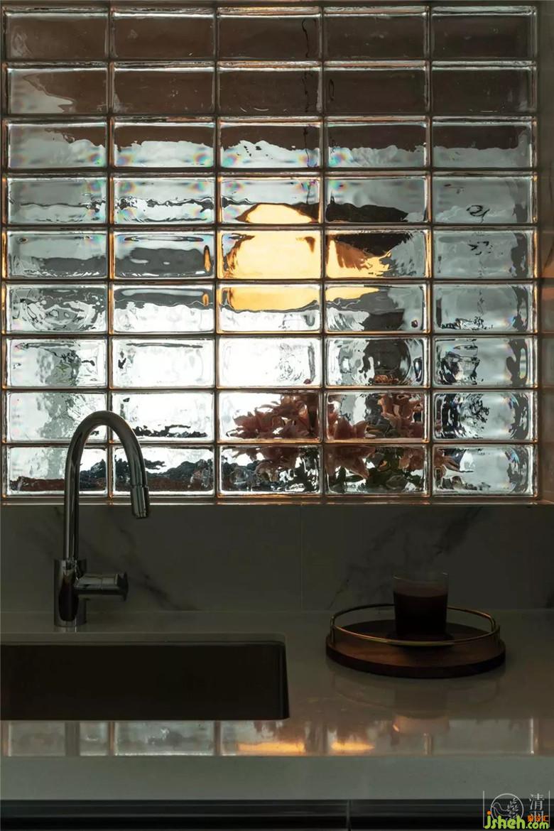 廚房空間設(shè)計(jì)做得明凈而簡潔,自然紋理的大理石墻面和地面,令空間增添了幾分格調(diào)感。設(shè)計(jì)上,注重廚房空間的通透性,玻璃門和 實(shí)心玻璃磚 的使用,讓家里人制作三餐和美食的過程變得輕盈、輕松,讓烹飪更是一個享受的過程。