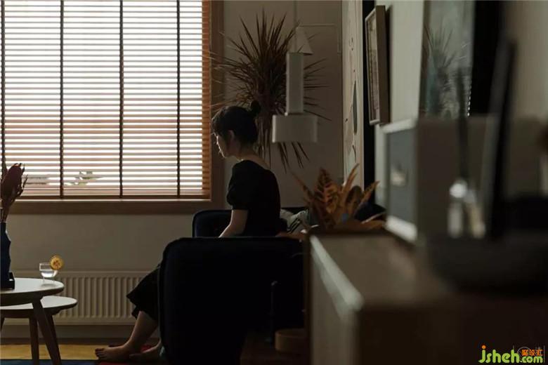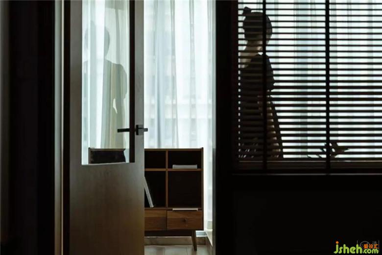 為了保證這一塊區(qū)域的私密性,又不影響客廳的透光,我們做了一個半玻璃的隔斷墻輔以百葉窗簾以顧兩全。