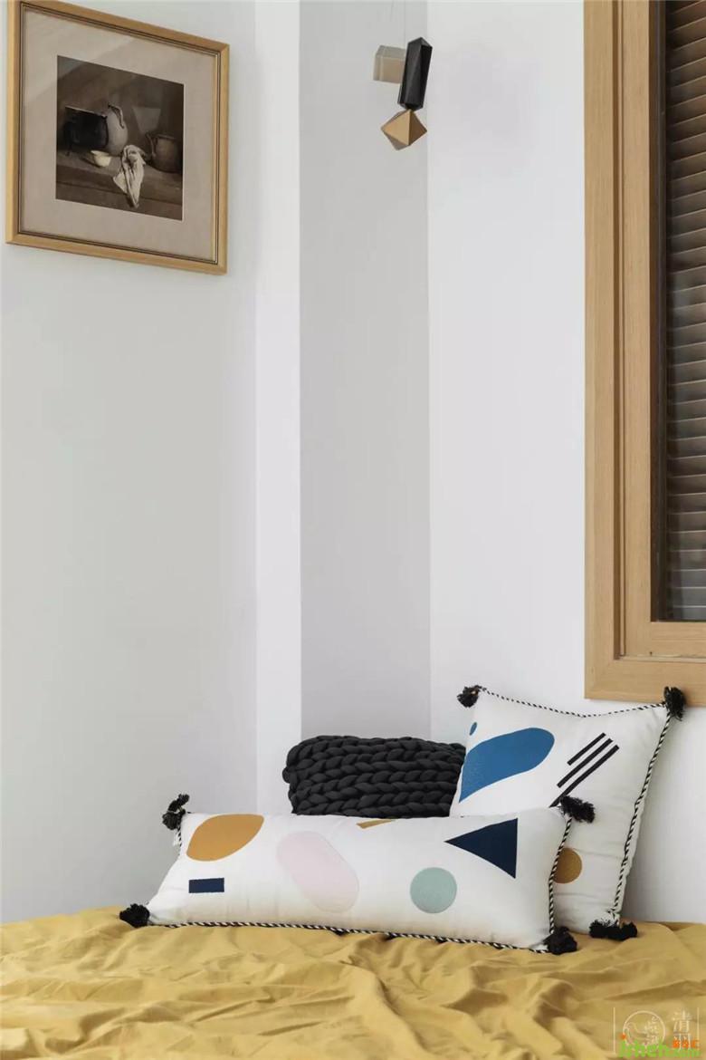 客廳外面的休閑陽臺我們把它改造成了帶居住功能的活動空間,以滿足業(yè)主想要在有限空間里,能給小朋友一個獨立房間的愿望。