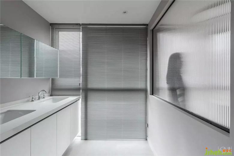 浴缸原本是想放置在靠窗的位置,后來出于安全考慮移到了內(nèi)側(cè),和洗漱臺平行,中間用長虹玻璃做了隔斷,保證隱私性的前提下最大限度采光。