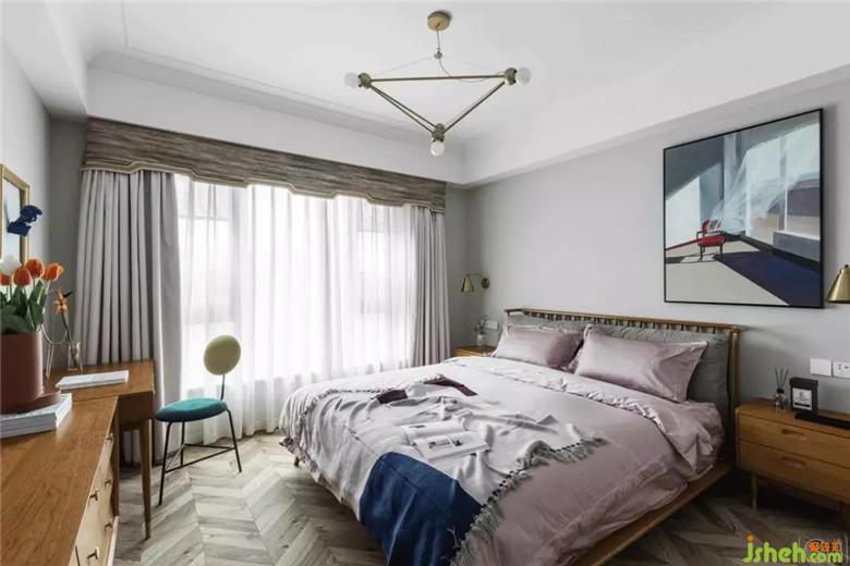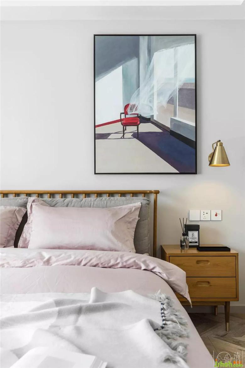 我們放棄了常規(guī)掛畫的形式,讓視角中心放在了右邊,主衛(wèi)到主臥我們做了玻璃隔斷,使整個空間連貫又互不打擾。