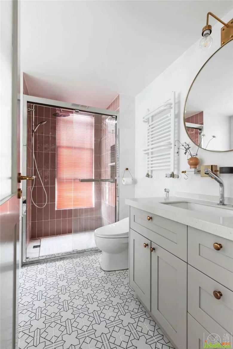 臟粉色的淋浴區(qū),讓空間不僅僅只有白色。