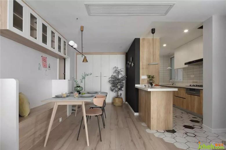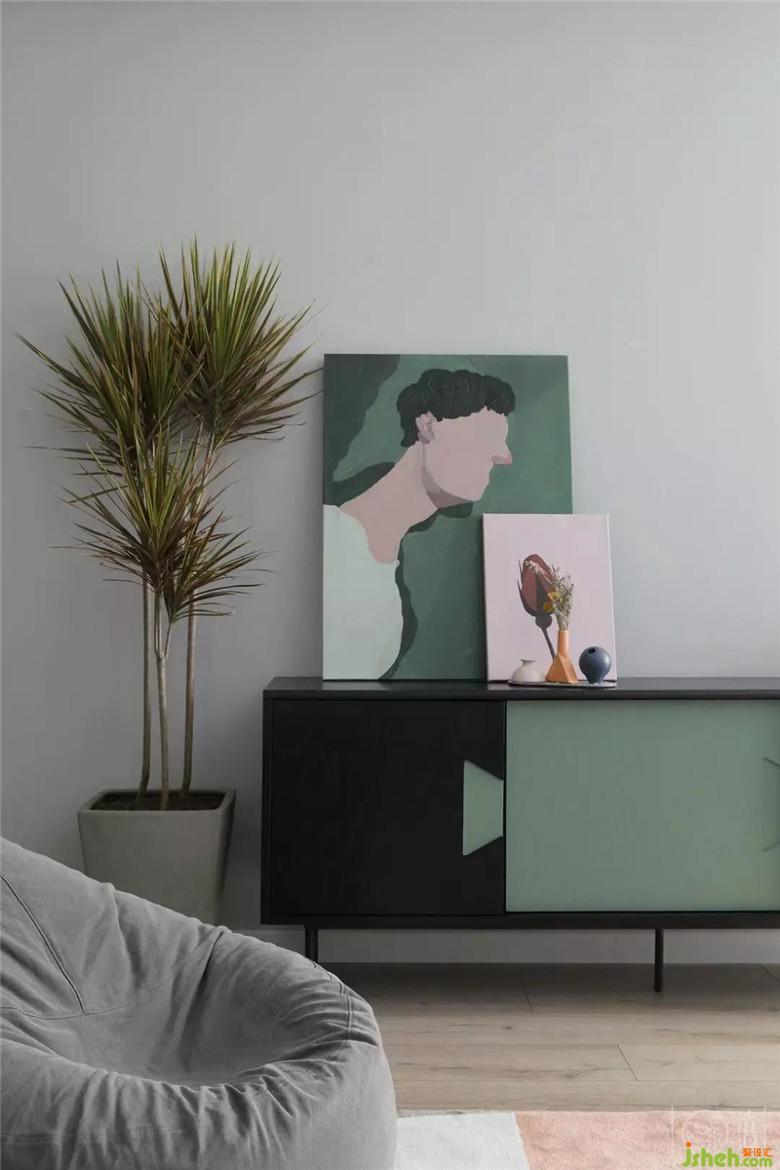 房子的整體采光都很好,我們也盡量的保留大部分的格局不變,讓自然光線可以撒滿整個屋子。因為廚房的格局與采光較弱,所以改動較大,廚房改為開放式的布局,增加吧臺與收納的空間。生活陽臺則從衛(wèi)生間通過,這樣廚房的空間也通透明亮起來。而在色彩上,我們也是采用大面積的灰度色彩,搭配低飽和度色調(diào)的的家具,讓整個房間通透而雅致,再用一些明亮顏色的配飾點綴其中,讓空間充滿趣味。