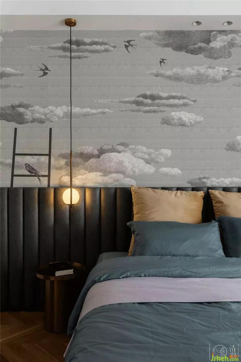 主臥有一個不大不小的陽臺,也剛好給了屋主一個可以放空的地方。白紗加銀灰色端面材質(zhì)的雙層窗簾,既能讓陽光均勻的鋪滿房間,也能關住一室的旖旎。