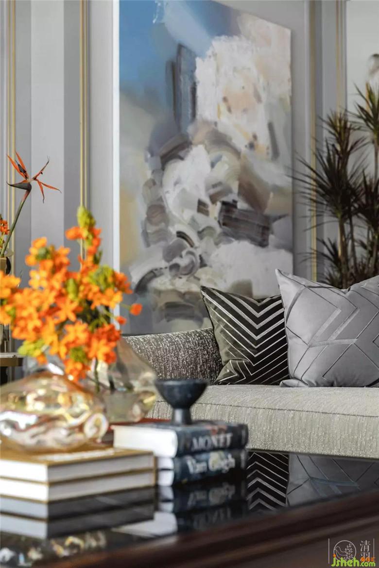 稍顯大面積的裝飾畫,用略顯抽象、但與客廳主色調(diào)相匹配的油畫,給客廳更多可以被想象的空間。