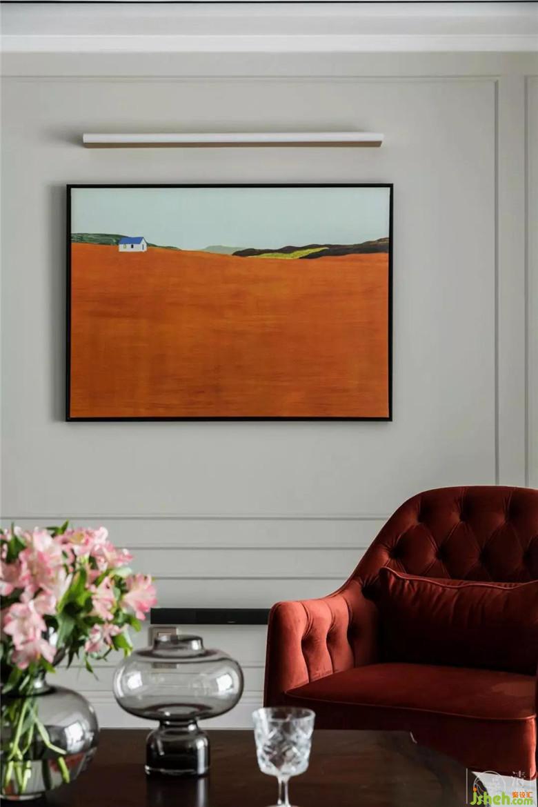 臟臟橘色的單人沙發(fā)配合墻面同色系的油畫,使得整個空間有了呼應、熱情又優(yōu)雅。