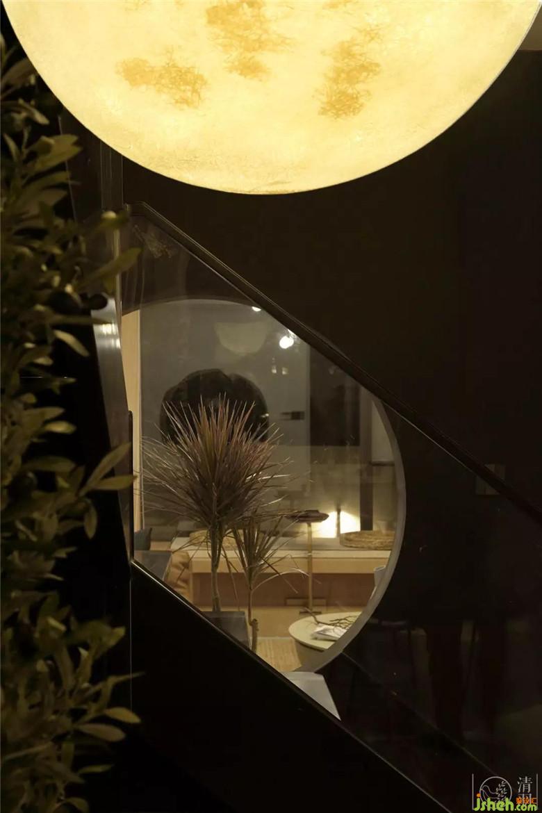三層樓的小別墅里安裝了地暖、中央空調(diào)、電梯,希望來到這里的人不需要被溫度、樓梯所束縛,從而擁有更加舒適方便的體驗。我們讓三個臥室呈現(xiàn)出不同的空間表情,為每個臥室搭配了不同的色彩和擺設(shè)。樓梯間出現(xiàn)的“月亮”,寓意“海上升明月,天涯共此時”。配合背景圓形鏤空的造型,我們希望帶給所有來這里度假的人們"團(tuán)圓"的感覺。移步換景,團(tuán)圓的概念貫穿在整個空間。
