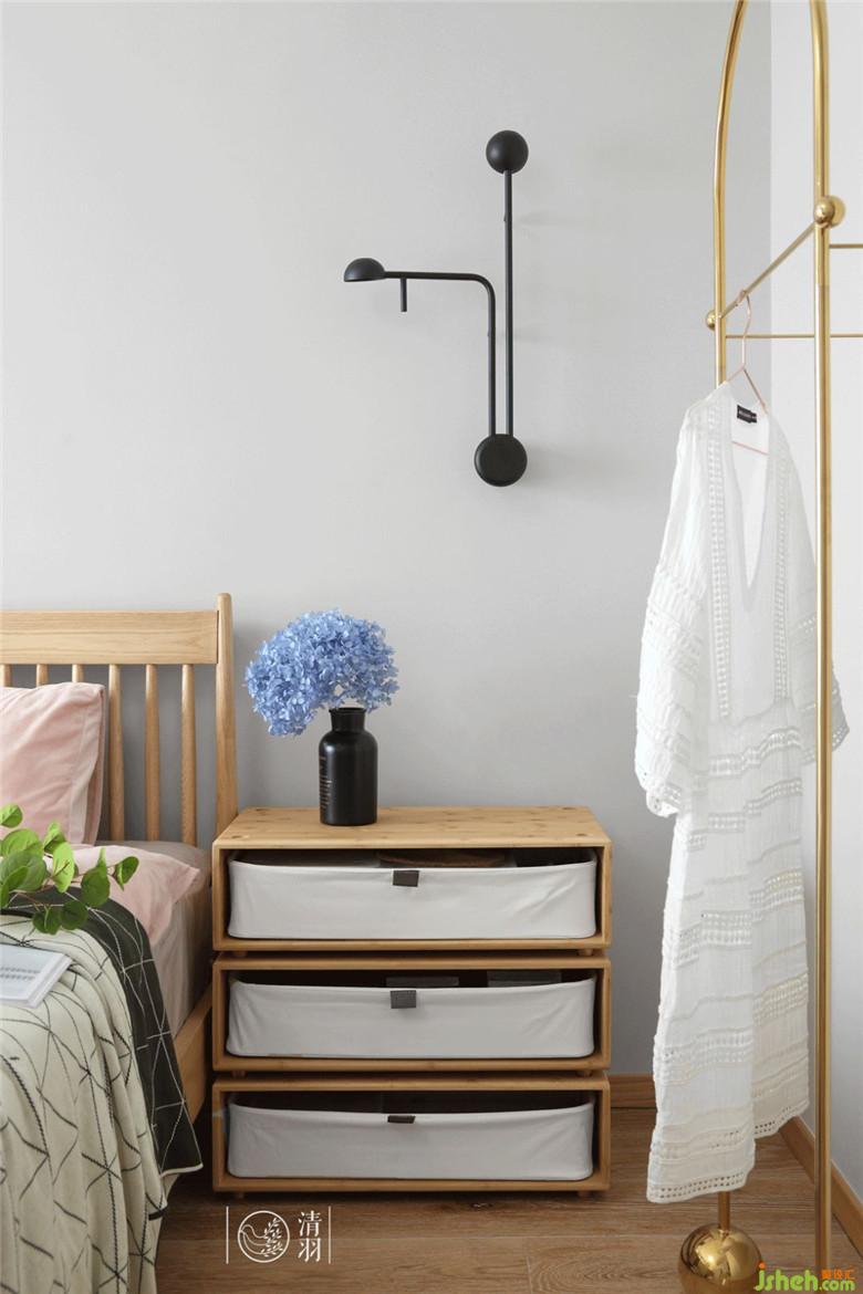面積淺灰色調(diào)的墻面顏色,搭配原木色家具,氛圍輕松自然,營(yíng)造出一個(gè)舒適的休息空間。