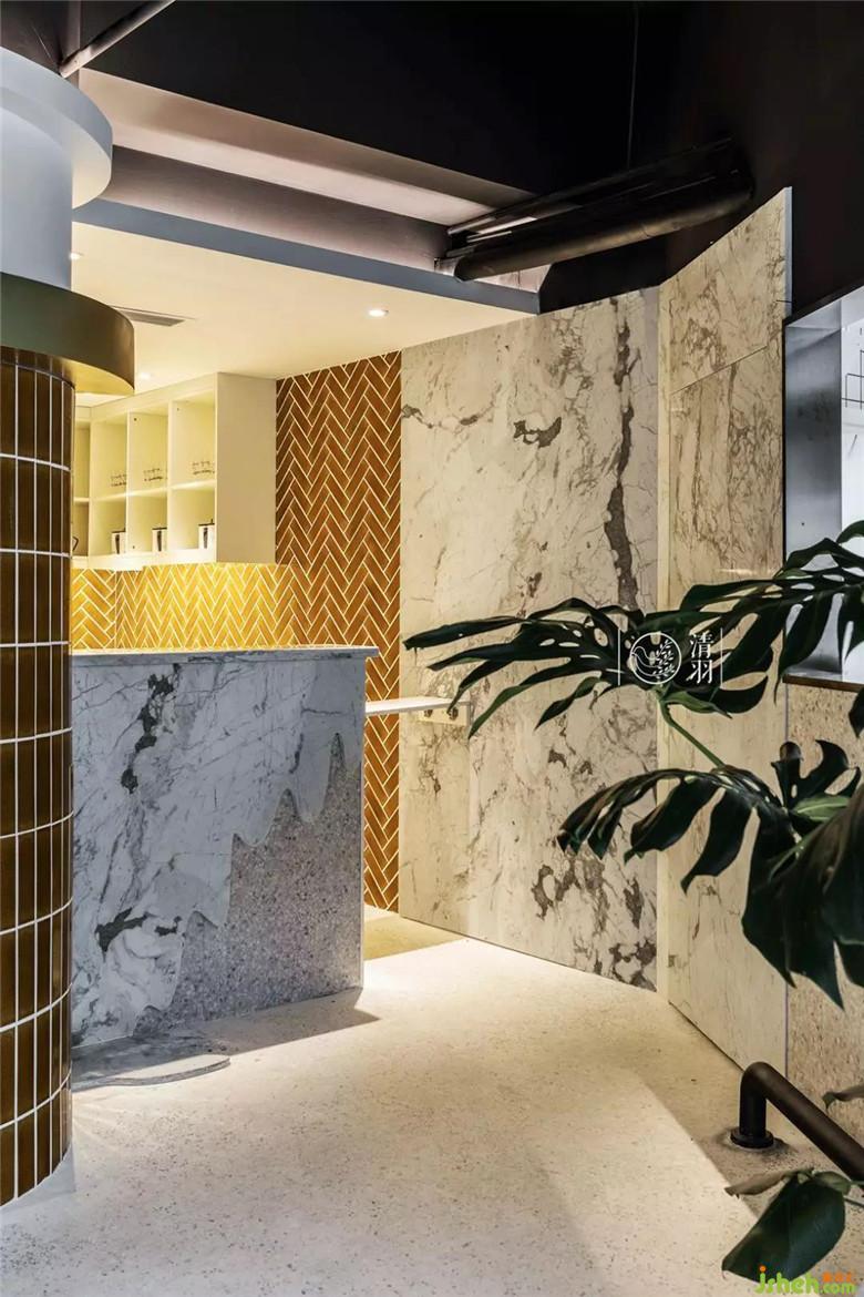吧臺(tái)區(qū)、奶茶區(qū)以及盥洗臺(tái)的石材造型,就像奶油流下來的效果: