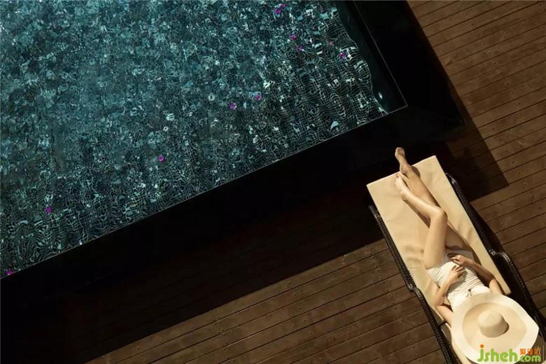 當(dāng)然,嚴(yán)格意義上來講,游泳池是開發(fā)商準(zhǔn)備的。我們只是為它挑選了不一樣的外衣。這里的湖水特別清澈也特別藍,這一次我們特意跳出了城市里泳池慣常使用的藍白色馬賽格法則,以黑白馬賽克漸變拼貼的方式,使它在水光的折射下顯出有細碎寶石藏于水下的質(zhì)感。