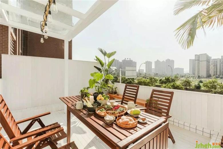 以上這組圖片如果不做說明,也許會有人覺得他們走錯片場。但它的確是這套緊湊套三里的超級彩蛋,一個讓人艷羨的超大陽臺。它原本的設計方案是整個打造為玻璃陽光房,由于物管刁難,經(jīng)歷了長達數(shù)月的交涉溝通,我們反復修改方案,最后在物管要求和設計效果之間尋求平衡點,最終打造出了熱帶島嶼度假酒店般的陽光露臺。