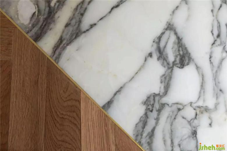 主衛(wèi)的地面與臥室交接處,我們?nèi)∠碎T(mén)檻石,全屋無(wú)高差,只用嵌入式銅條做了分隔。