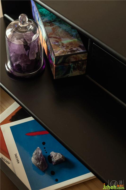 主臥不僅在衣柜上加強(qiáng)收納的巧思,飄窗也設(shè)計(jì)了收納空間,梳妝臺也讓它藝術(shù)的上了墻。利用每一處可以利用的空間,才能創(chuàng)造更舒適的生活。
