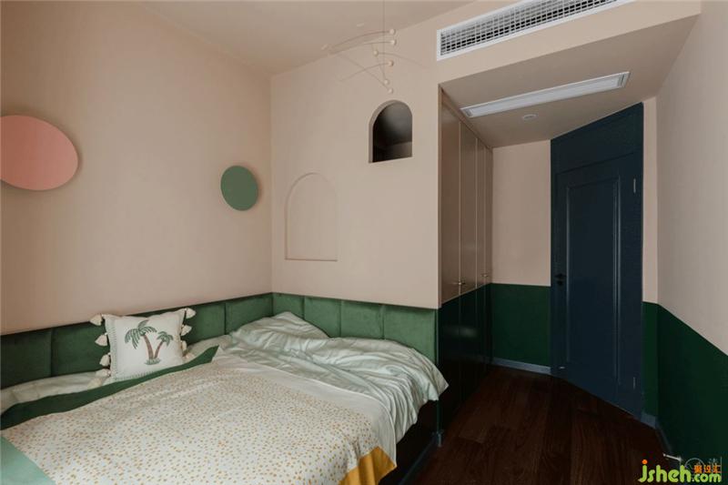 次臥的墻面被切了個(gè)角以后,進(jìn)門的樣子就顯得格外有趣啦,于是這個(gè)房間就全是滿滿的童趣。裝修設(shè)計(jì)