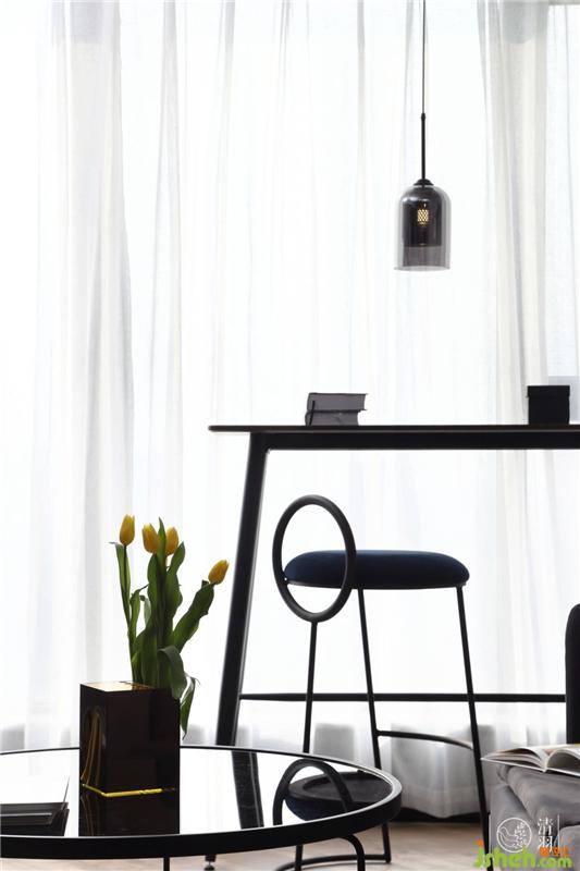 臥室是溫馨浪漫的,深湖藍(lán)色除了冷靜之外,還伴有浪漫之意。用深湖藍(lán)色配上燈光的暖、地板的黃、床頭柜的棕,窗紗的白等跳色,冷暖相交將整個空間變得浪漫而溫馨。室內(nèi)設(shè)計師