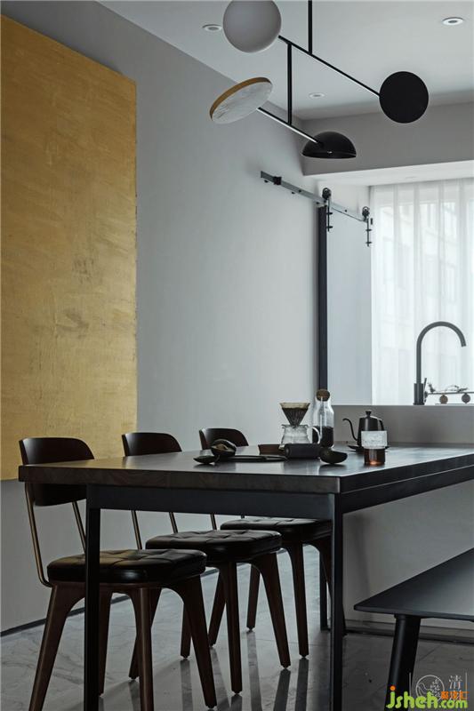 有陽臺(tái)的餐廳美妙之處在于,迎著穿透紗幔的晨光,步出臥室的涵涵可以先順手煮上一壺曼特寧,讓滿室的咖啡香氣替她叫醒還賴在被窩的先生和兒子女兒……
