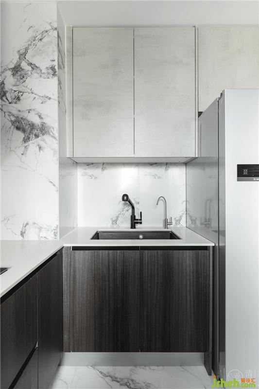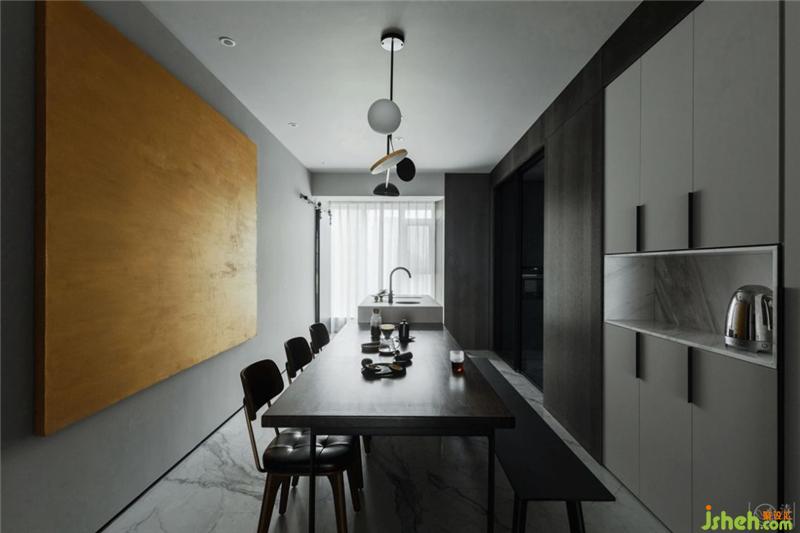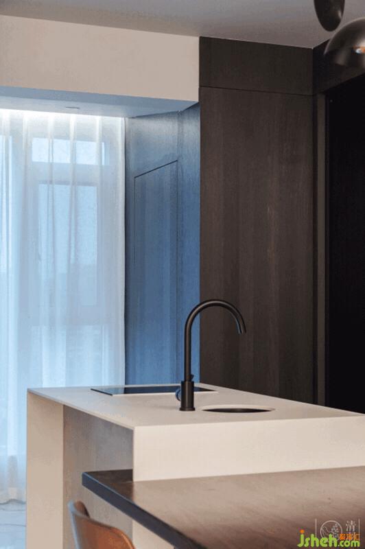 簡(jiǎn)潔到只剩下剛需功能的廚房,盡可能規(guī)整的線條,只在設(shè)備和器具的挑選上下足功夫,便足以構(gòu)建出功能強(qiáng)大的餐廚操作空間。