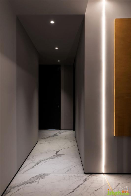 在餐廳陽臺(tái)旁邊的一處隱藏門后,是生活陽臺(tái)。旁邊的黑色玻璃門后是廚房。