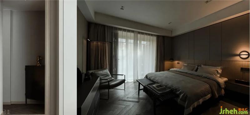 休息區(qū)域以Eno Studio_ Plus的壁燈與& tradition的吊燈作為兩側(cè)的床頭燈,左右一橫一豎的線條也正好與墻飾面板呼應(yīng)出層次感。