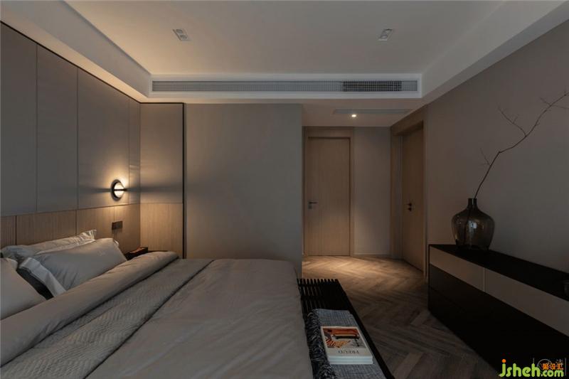 與衣帽間的交接處只以銅條接駁不同的地面材質(zhì),劃分出空間的功能性, 同樣全屋無(wú)高差設(shè)計(jì)。