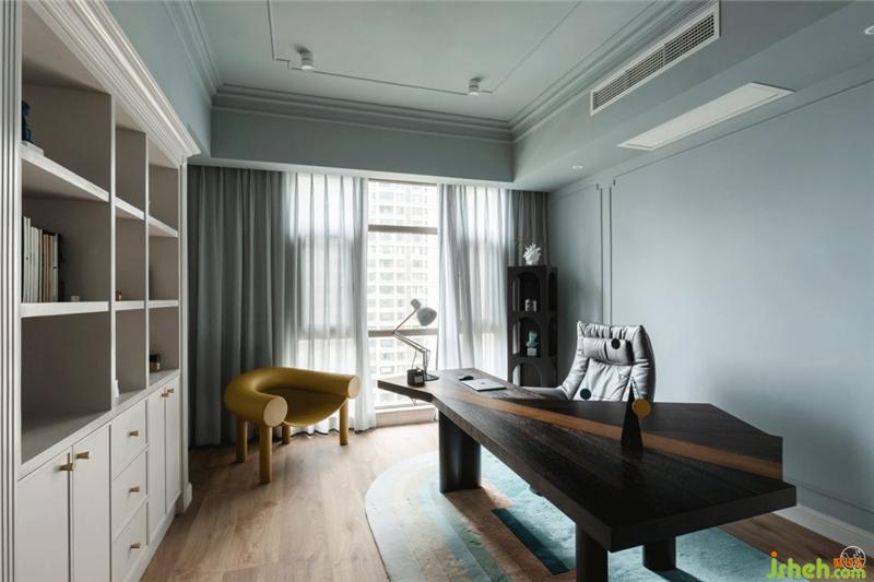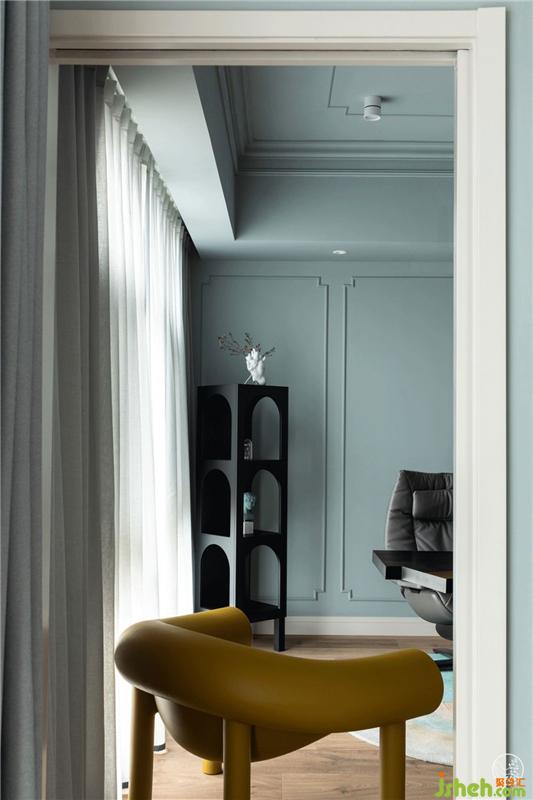 主色調(diào)是能讓人快速感到平靜安寧的,海邊天空的淺灰藍(lán),墻面呼應(yīng)客廳做了最簡(jiǎn)單線條勾勒,畢竟看書(shū)或辦公都多少需要一些儀式感的。室內(nèi)設(shè)計(jì)師