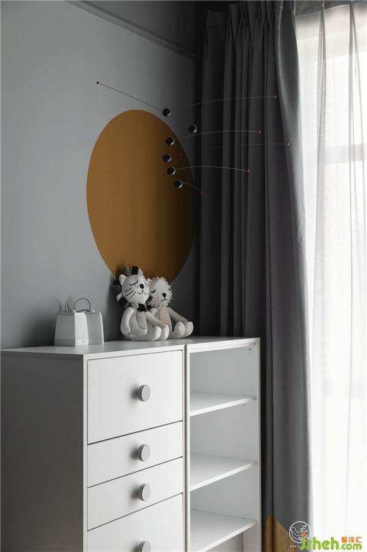 墻面姜黃色的圓形粉刷圖形讓整個空間更加靈動有趣。