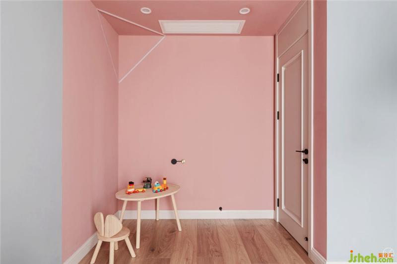 另一個粉可愛的房間現(xiàn)在是兒童游戲室的狀態(tài),其實是夫妻倆很想要一個女兒,這也是四川家庭的特色,所以我們提前做了女兒房的設計規(guī)劃,希望寶寶全家心想事成。