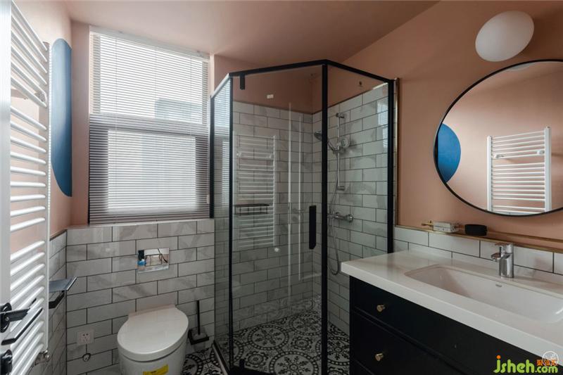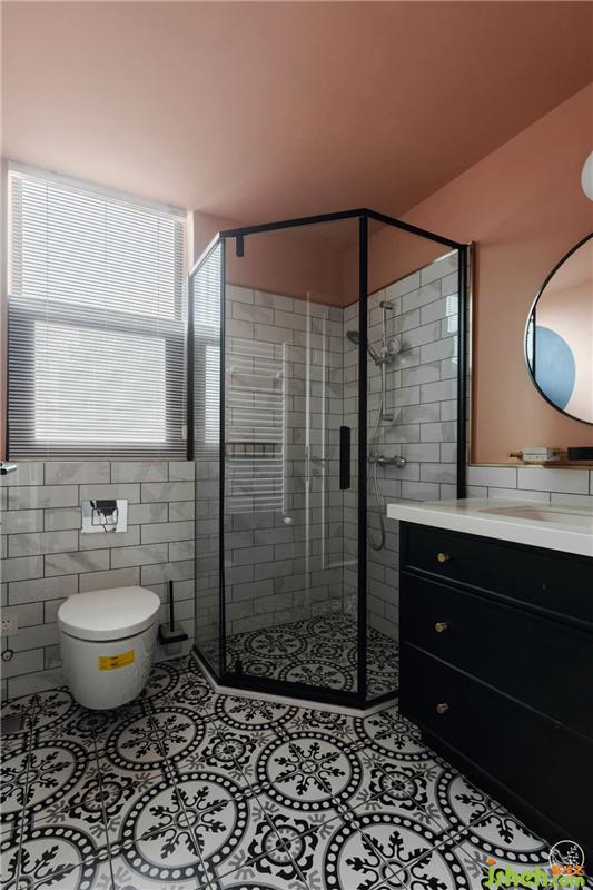 給孩子們的衛(wèi)生間是靈動百變的積云,一半俏皮粉,一半雅致灰白,地面則是摩登復古的印花瓷磚,如同走進摩洛哥的藝術(shù)酒店,強調(diào)十足。室內(nèi)設(shè)計師