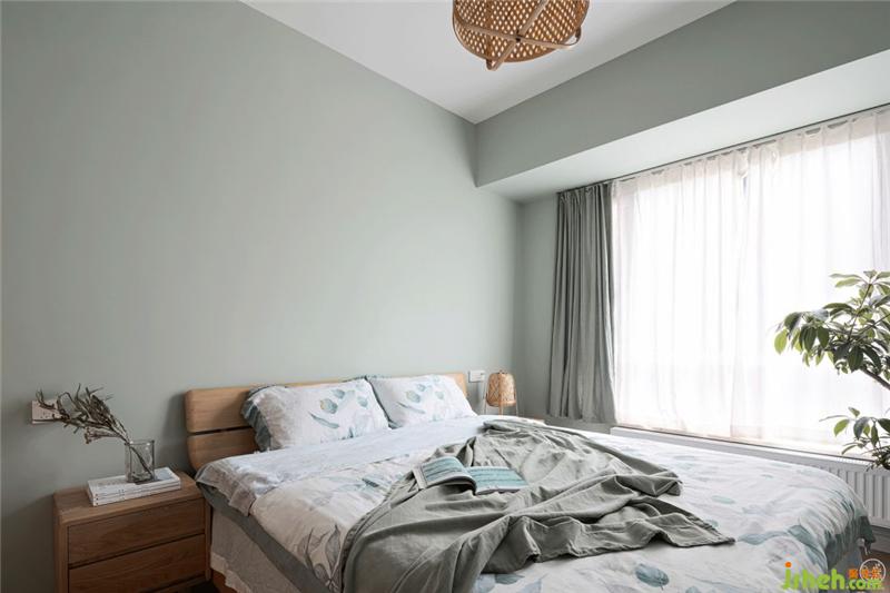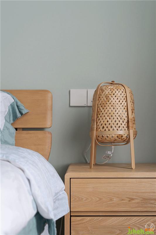 在父母房中,考慮父母年紀較大,墻面、窗簾、被套我們都以綠豆灰為基調,搭配著窗紗和床藝用品的棉麻白、床頭柜的原木色,營造出舒適、健康又賞心悅目、富有治愈氣息的休憩環(huán)境,更有益于睡眠。