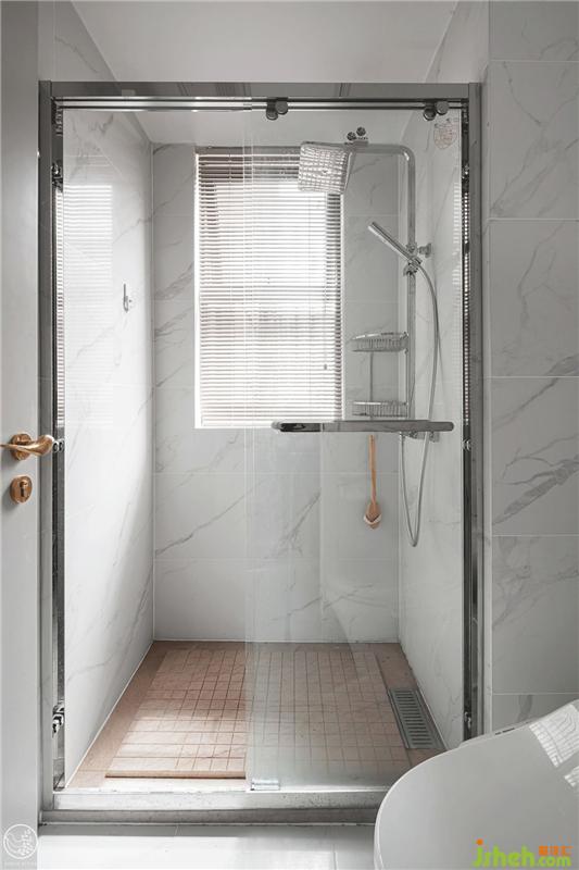 在淋浴間,我們采用粉色石材的地面,視覺上拉伸狹小的空間,浪漫的空間氛圍并帶有優(yōu)雅、高級質感的空間躍然而出。室內設計師