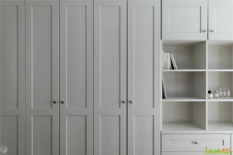 床對(duì)面的墻面體被用來做了極致的收納空間,有虛有實(shí),有開有合。室內(nèi)設(shè)計(jì)師