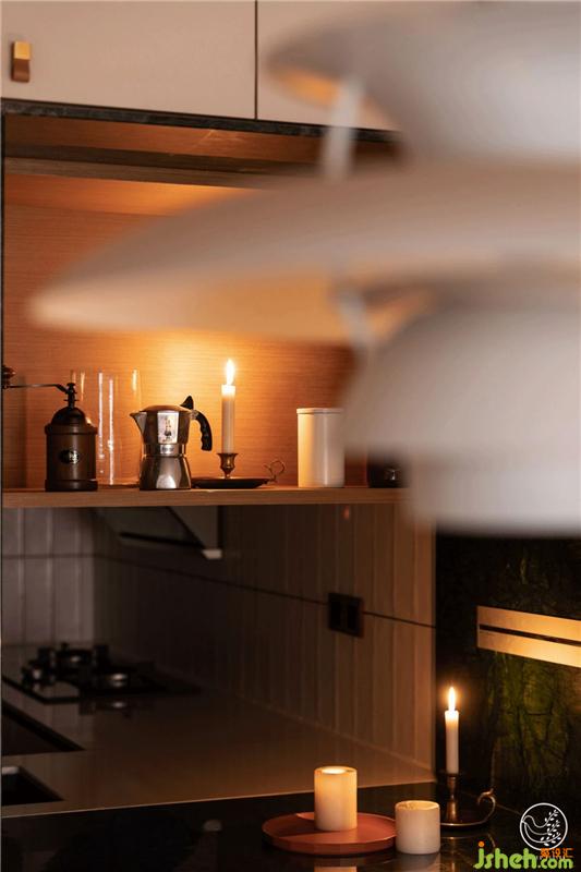 這樣的設置除了想要打破人們對空間的刻板印象,并以此增加廚房的采光,利用柜體隱藏冰箱加大了空間利用率;也期望借此給他們的生活增添一些可以交流的小情趣。