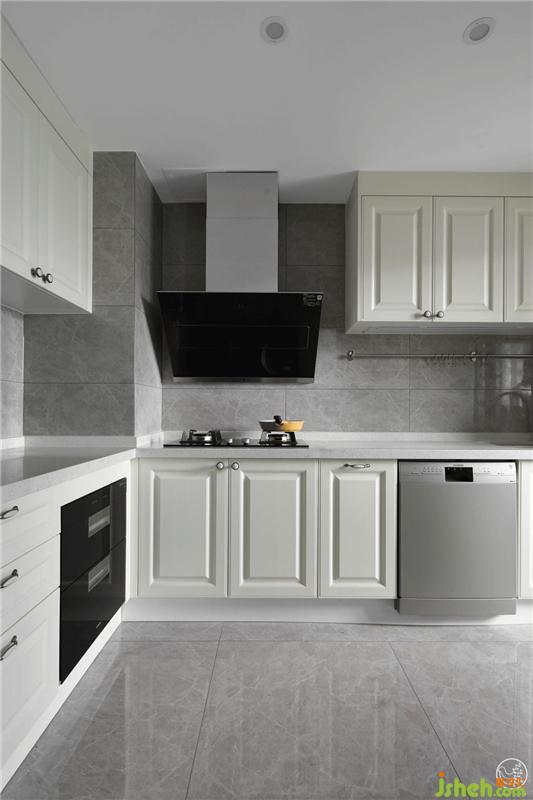 步入廚房,干凈的灰色瓷磚,結(jié)合奶油色的的櫥柜,既簡(jiǎn)約又整潔。中西兩室廚房搭配,最大程度的滿足Joan對(duì)功能與審美的需求。