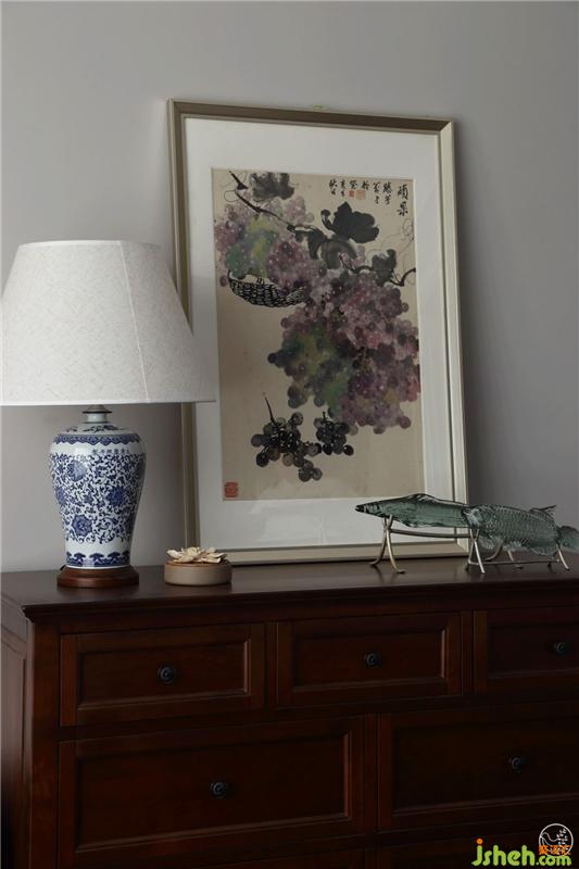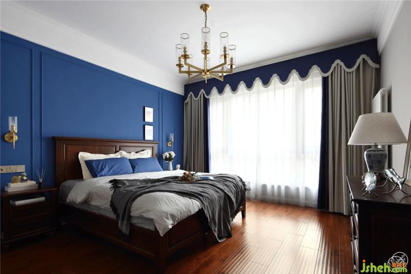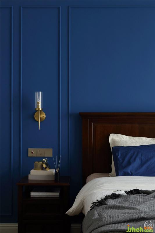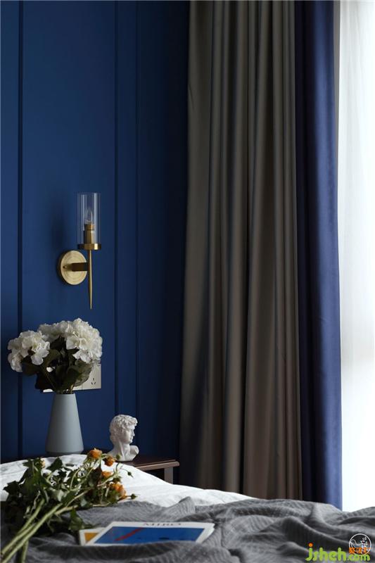 主臥空間以莫蘭迪灰搭配夜空藍(lán)、黃銅材質(zhì)、與家具相呼應(yīng)的木紋地板,棉麻與金屬,木質(zhì)與陶瓷,在靈動(dòng)感與舒適度間密切交疊,雅適而簡(jiǎn)約。室內(nèi)設(shè)計(jì)師