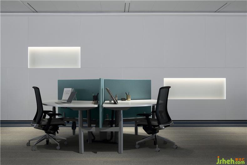 協(xié)作辦公區(qū)被定義為“智慧型的辦公舞臺(tái)”。以隔板為界的兩套辦公桌椅,促進(jìn)了員工之間的協(xié)作和互動(dòng)。值得一提的是,這里選用了可升降的辦公桌,讓員工有權(quán)選擇適合自己的辦公方式