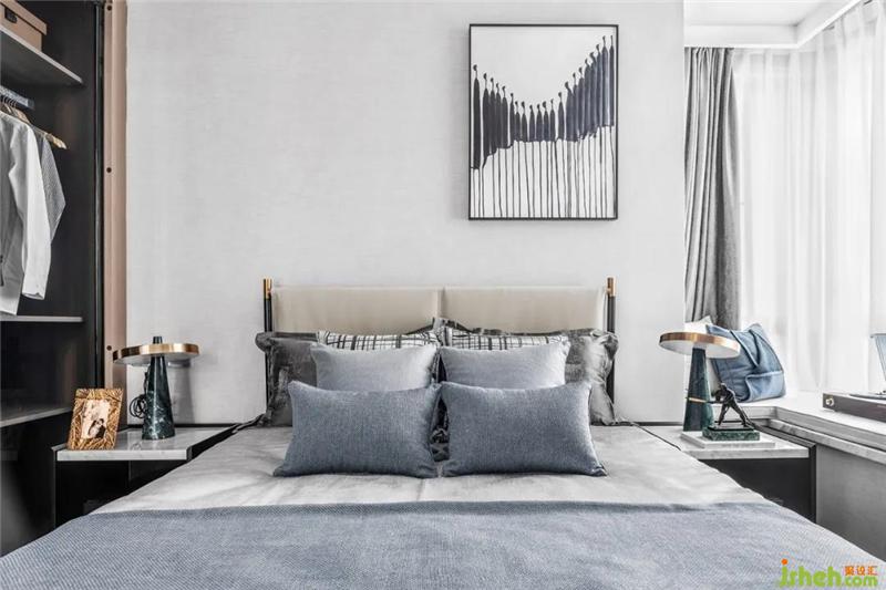 主臥色調(diào)以高級灰色為基調(diào),再點綴些許銅色和出豐富層次感,溫暖又有質(zhì)感的色系,為居家奠定靜謐沉穩(wěn)的氛圍。