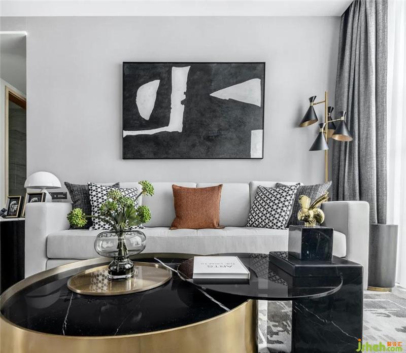 客廳空間簡約大氣,地面的線條勾勒,幹凈利落的家具,精致的軟飾,錯落有致,精致和諧,配以色調(diào)與紋理表現(xiàn)力極強的地毯,局部搭配石材的家私飾品,細(xì)節(jié)處不時運用金屬線條鑲嵌等些許元素提升意境,使生活多了壹份品味和關(guān)懷,營造壹個蘊含現(xiàn)代輕奢的品質(zhì)空間。