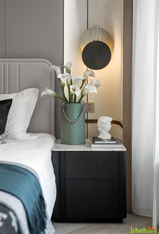 臥室設(shè)計延續(xù)精奢雅致的空間氛圍,傳遞低調(diào)穩(wěn)重的空間質(zhì)感,典雅清麗的花藝,樣板房設(shè)計以及意式抽象的裝飾擺件等構(gòu)置,再次強化了寶格麗的風(fēng)情與格調(diào),烘托出飽滿而真實的生活情境,輔以細節(jié)處的精雕細琢,最終達成了一個獨具時尚魅力的現(xiàn)代藝術(shù)空間。