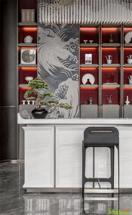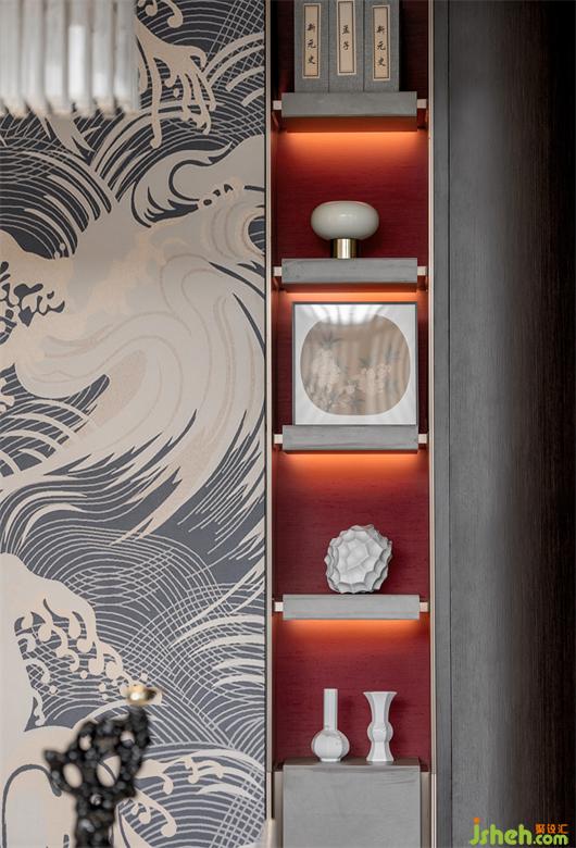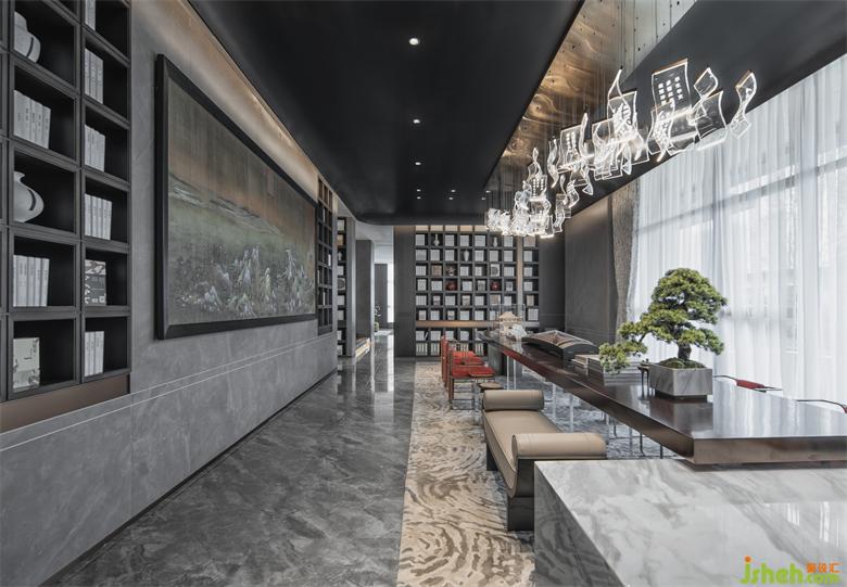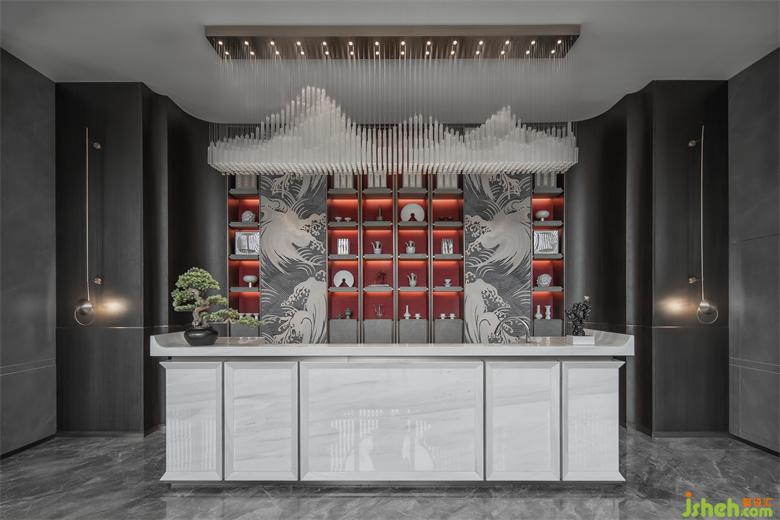 同時(shí)引入宋瓷擺件「似玉非玉更勝玉」的點(diǎn)綴,朱紅與金屬交疊,轉(zhuǎn)角處宋畫之美蜿蜒引入,銷售中心設(shè)計(jì)將水墨融入空間流動(dòng)的力量,給空間註入活力。虛無靜謐,所有的藝術(shù)變得真實(shí)可觸,灑於空間,基於時(shí)空,慢慢沈澱,漸漸呈現(xiàn)。