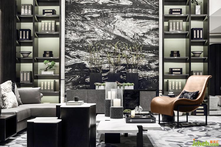 會客廳巧妙地連結(jié)吧臺區(qū)與書房品茗區(qū),每個空間看似獨立卻又相互串聯(lián)。這是設(shè)計師的“刻意為之”:“中西生活方式合并,看似彼此矛盾,卻也產(chǎn)生恰到好處的融合之美。獨立使用的時候可以保證功能分區(qū),但當(dāng)他們合并在一起,生活也就有了重疊?!?