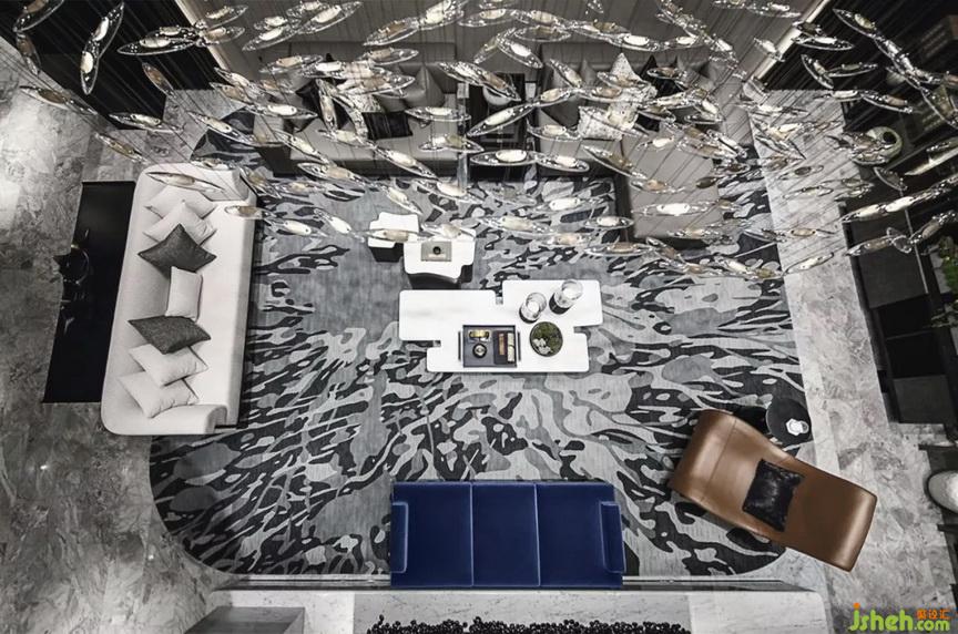就地下生活空間而言,設(shè)計不只是關(guān)注會客的基本功能,更把目光投向未來室主人的生活方式。將主要空間留給社交形生活方式設(shè)計的會客廳,會客廳又巧妙地將吧臺區(qū)與書房品茗區(qū)串聯(lián)。