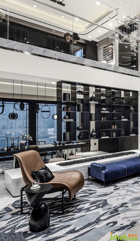 設(shè)計充分利用地下空間超高的挑空,塑造出優(yōu)越、儀式性的生活空間效果,配以典雅的材質(zhì)及高聳的書架讓人眼前一亮,地下空間完全的開放與融合,室內(nèi)設(shè)計師為室主人營造出一個靈動,豐富有趣的生活場景。